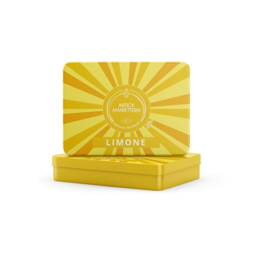 In deze elegante en kleurrijke blikken doos van Barbero vindt u ambachtelijk bereide amaretti met de verfijnde smaak van frisse citroen.