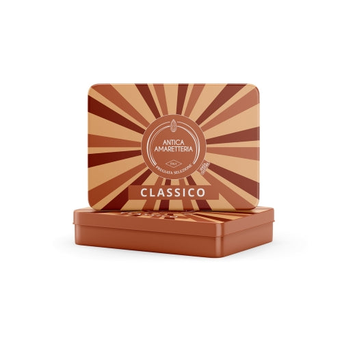 In deze elegante en kleurrijke blikken doos van Barbero vindt u ambachtelijk bereide amaretti met de klassieke amandelsmaak.