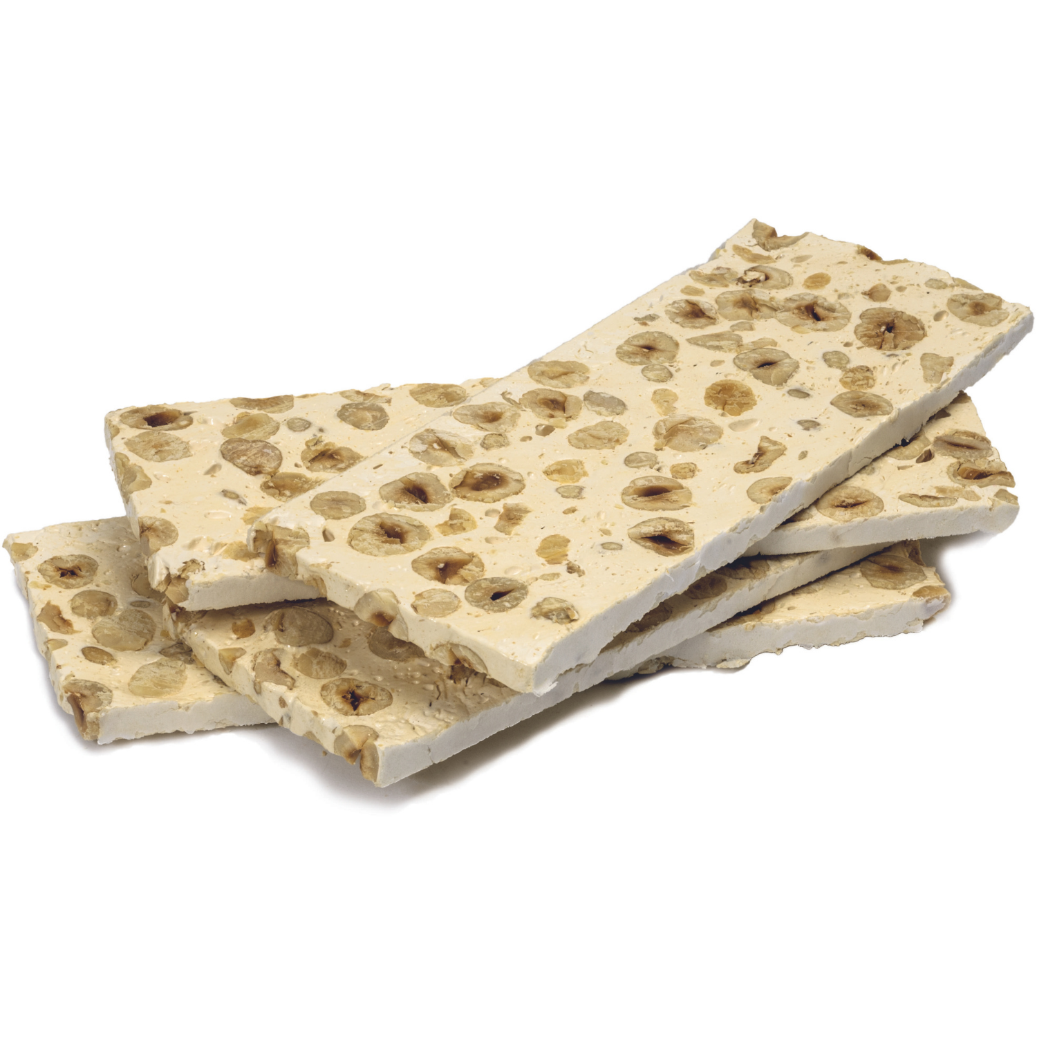 De beroemde Torronfette, zeer dun en kruimelige nougatrepen dankzij hoogwaardige grondstoffen en lang koken in stoommachines, in een kostbaar blik, met een verfijnde en vintage esthetiek.