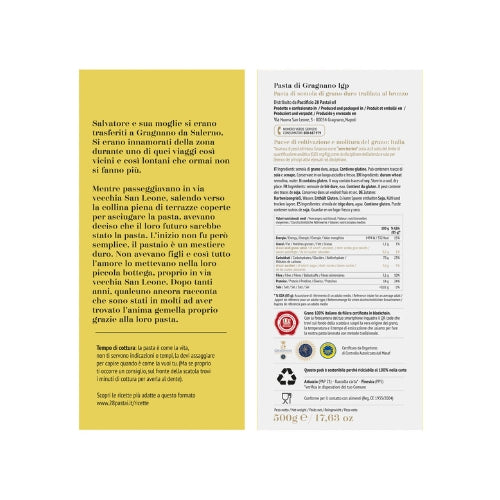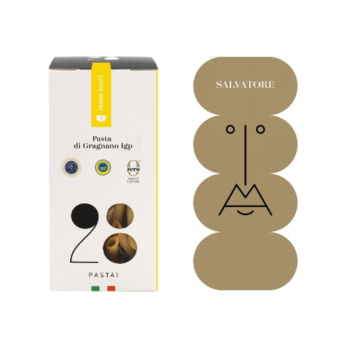 Penne rigate is een soort korte pasta van Gragnano IGP, bronsgetrokken, geproduceerd door 28 pastamakers in zijn historische pastafabriek in Gragnano, met een ambachtelijk recept waarbij uitsluitend 100% Italiaanse tarwe uit de heuvels van Frentane wordt gebruikt.
